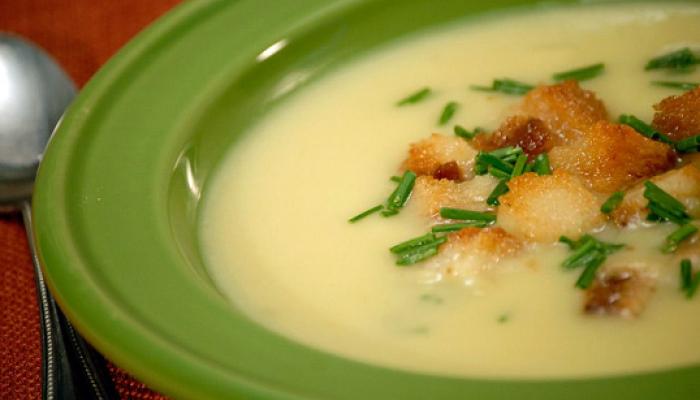 Pour the soup into bowls; add the toast rounds, two for each